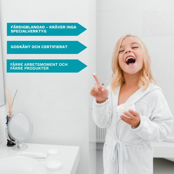 - Ger ett godkänt och tätt våtrum med lång hållbarhet