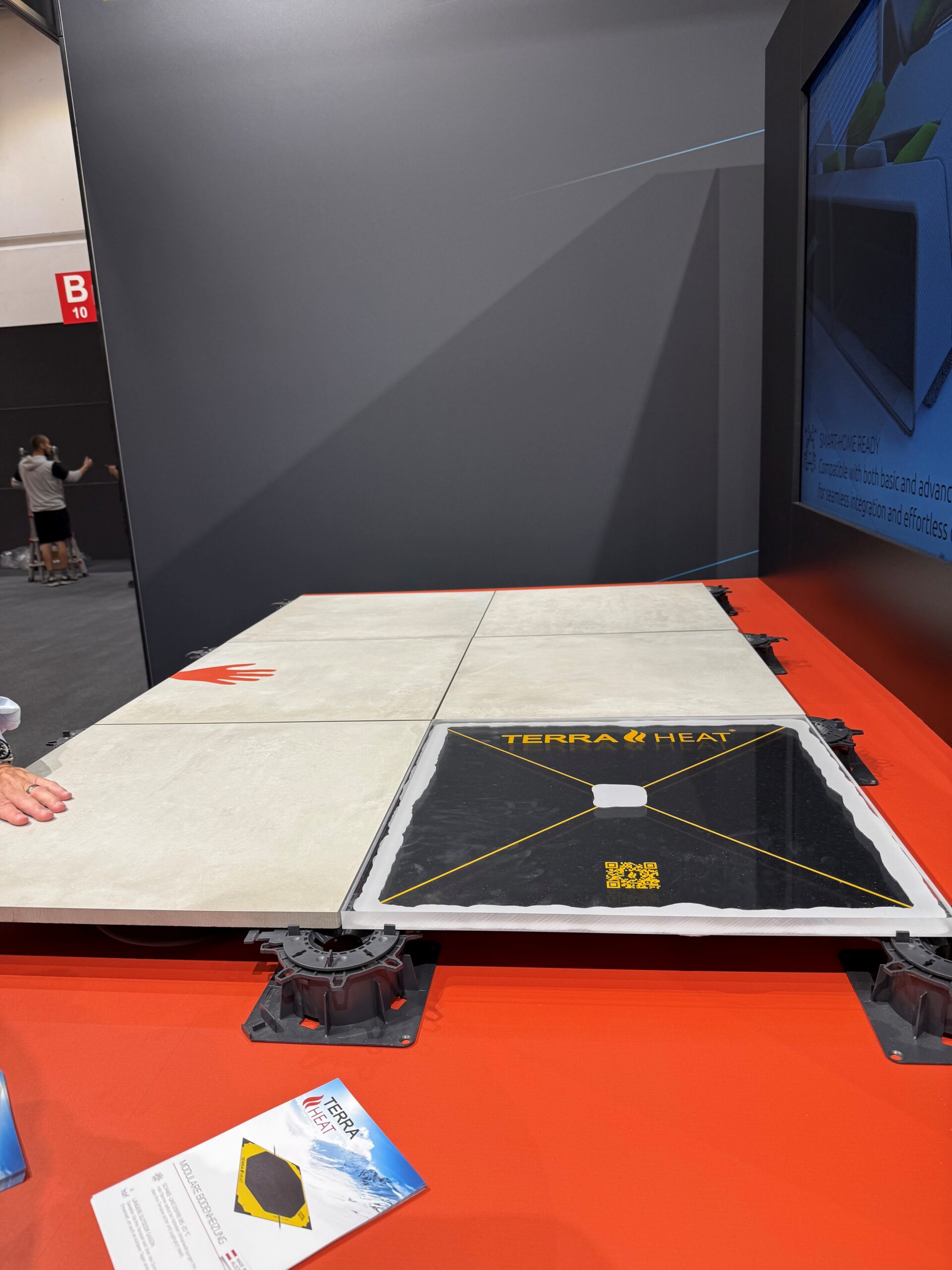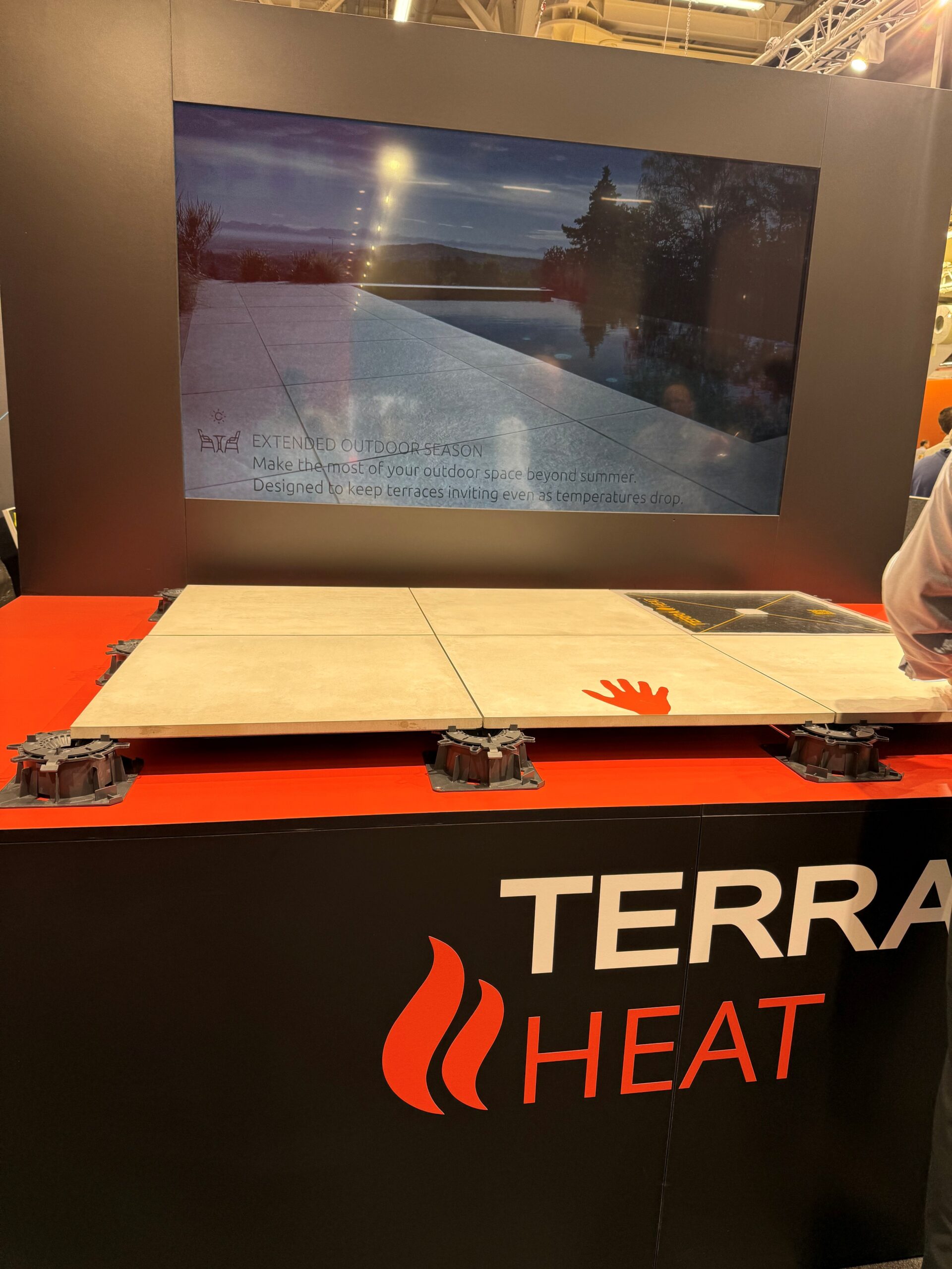 Klinker utomhus är något vi älskar för dess tåliga och lättskötta egenskaper. Tänk att ta detta ett steg längre för alla platser med växlande klimat. På mässan kunde vi se ett smart sätt att med hjälp av värmesystem under keramiken smälta bort is och snö på plattorna. En dröm för oss här i Norden!