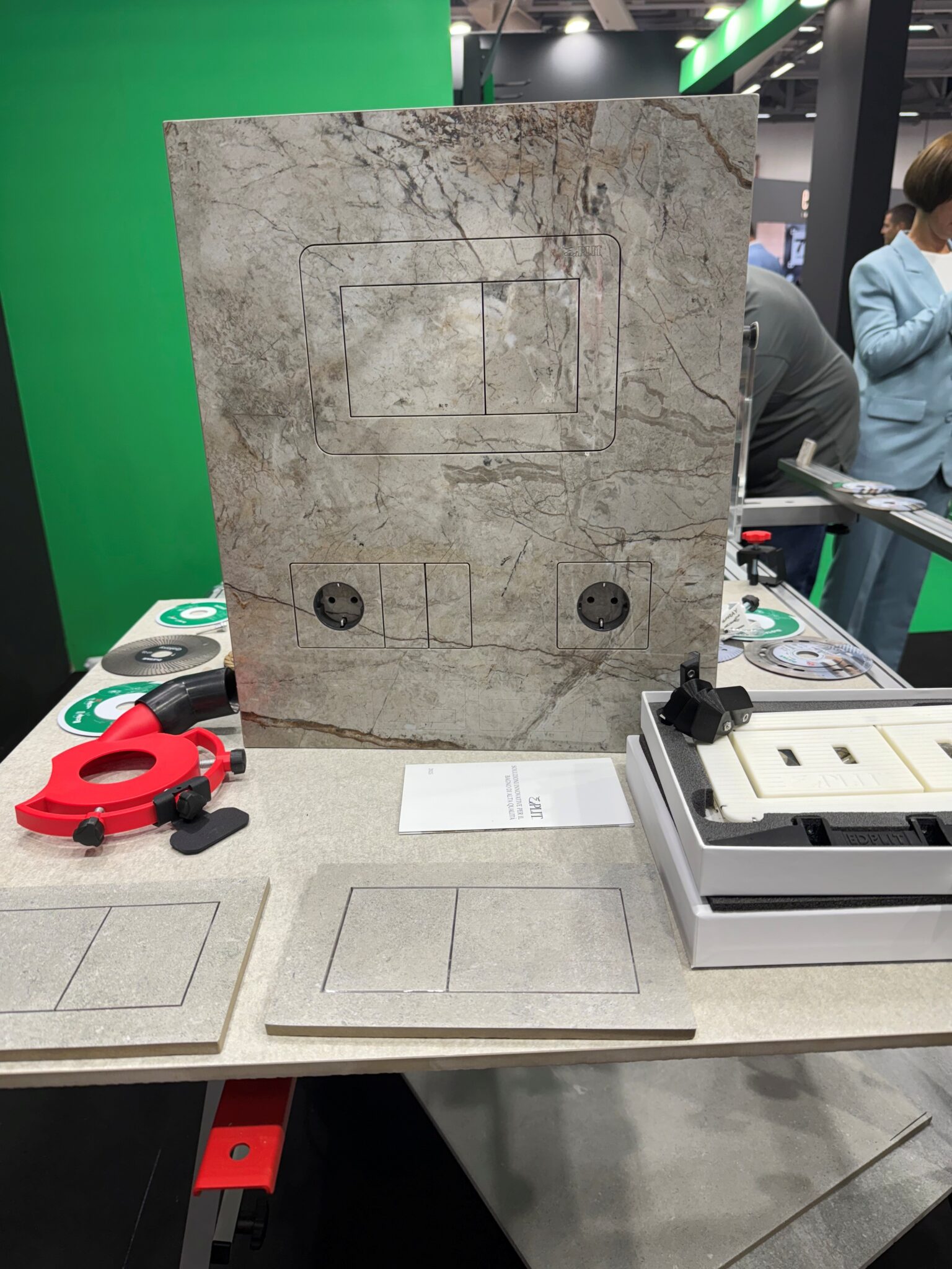 Plattsättningsarbetet är ett tungt yrke som på sikt sliter på kroppen. Detta var något som belystes på mässan där vi kunde se innovativa hjälpmedel för att reducera slitage vid tunga lyft.